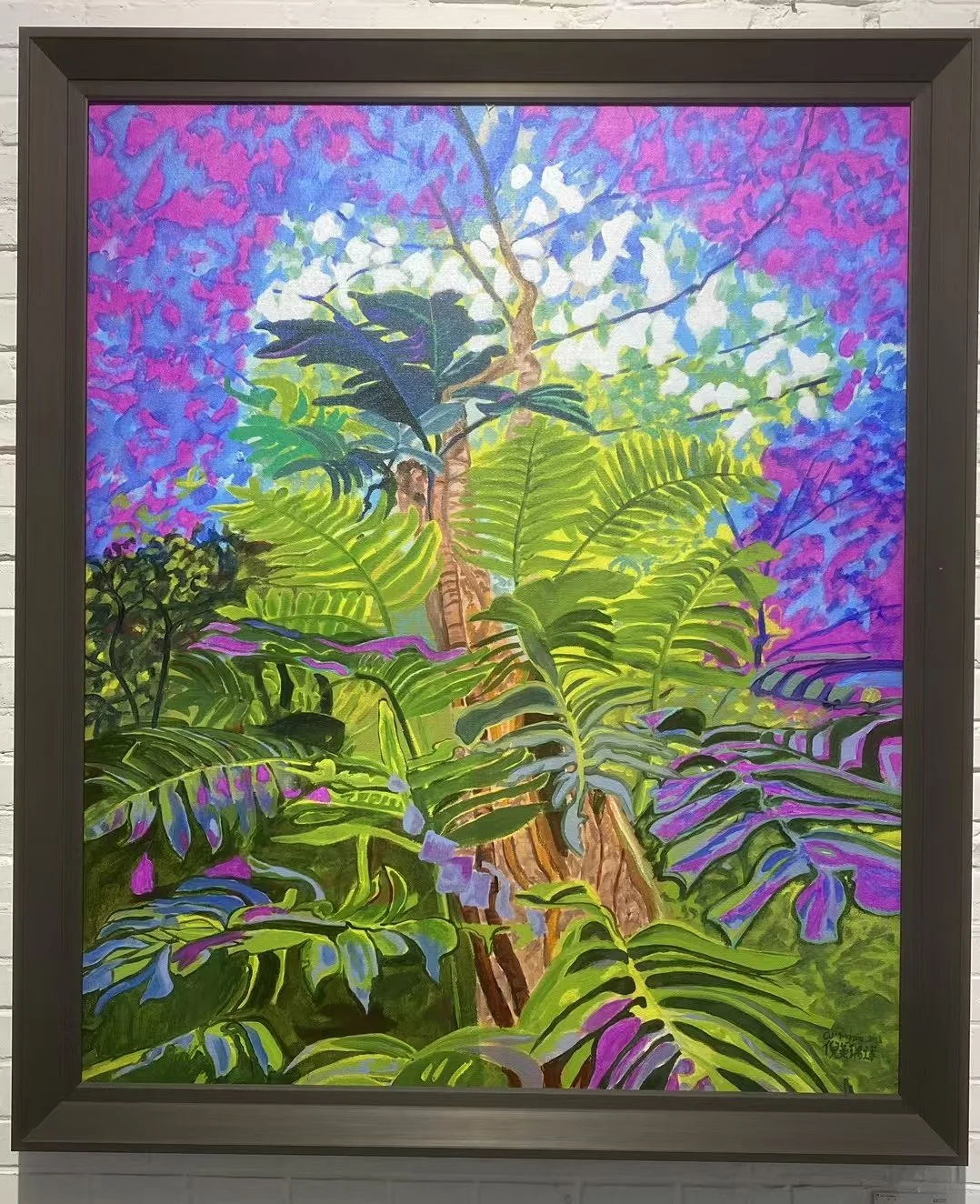 Electric Fronds, Acrylic on Canvas, 120 × 100 cm, 2023